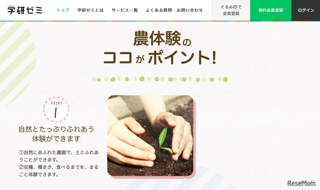 学研教育アイ・シー・ティーが提供する、熱中できるまなびのポータルサイト「学研ゼミ」は、親子で参加できる新たな体験サービス「親子でふれあい農体験」を開催する。9月9日は川越・南古谷農園にて、10月21日は横浜・鶴ヶ峰農園にて、各回30名程度を募集する。