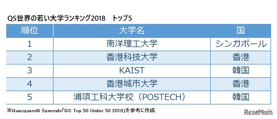クアクアレリ・シモンズ(Quacquarelli Symonds、以下QS)は7月13日(現地時間)、創立から50年未満の若い大学を格付けする世界大学ランキング「QS Top 50 Under 50 2018(世界の若い大学トップ50)」を発表した。