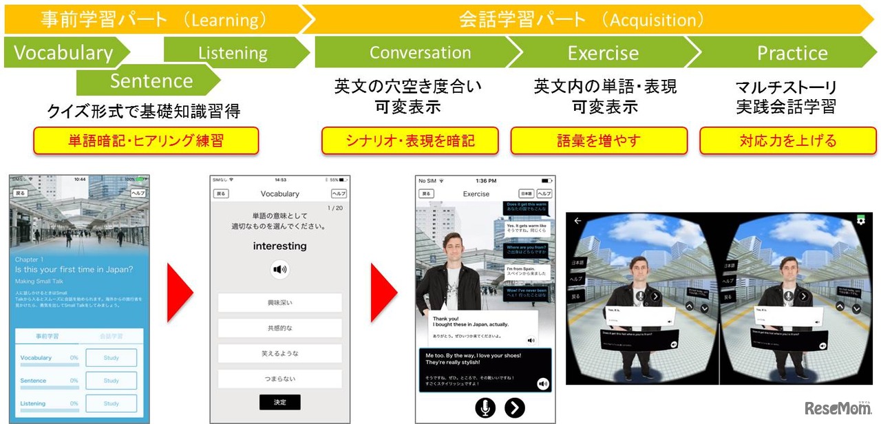 イーオンの新英会話学習アプリ「英語でおもてなしガイド(VR対応)」 構成解説図