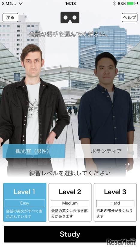 イーオンの新英会話学習アプリ「英語でおもてなしガイド(VR対応)」 画面イメージ
