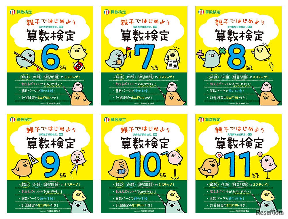 日本数学検定協会は7月20日、算数を親子で学ぶための新しい学習書「親子ではじめよう算数検定(6級~11級)」を刊行した。各書の最後では算数検定特有の問題を扱うなど、算数検定の受検対策に役立つ1冊だ。定価は各900円(税別)。