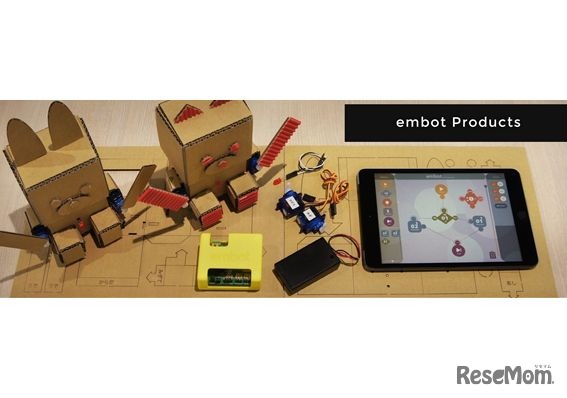NTTドコモとインフォディオは7月19日、ダンボールロボットを利用したプログラミング教材「embot(エムボット)」を開発し、「embotキッズプログラマーズスターターキット」の先行体験版の販売を開始した。