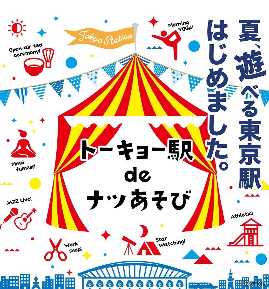 東京ステーションシティ運営協議会は夏休み期間中、東京駅八重洲口「グランルーフ」2階デッキにて「トーキョー駅deナツあそび」を開催する。東京駅という特別なロケーションで天体観測やアスレチック、キャンプあそびなど8種類のコンテンツが順次開催される。