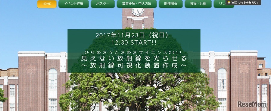 京都大学放射性同位元素総合センターは11月23日、ひらめき☆ときめきサイエンス2017「見えない放射線を光らせる」を開催する。対象は高校生。申込みを10月31日までメールにて受け付けている。参加費は無料。