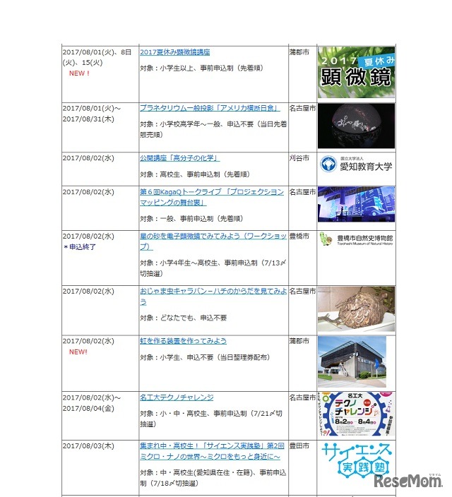 愛知県全域と周辺地域で開催する地域科学祭「夏休み あいちサイエンスフェスティバル」が8月31日まで開催される。大学や科学館、博物館などと連携して開催し、多彩なプログラムを用意している。