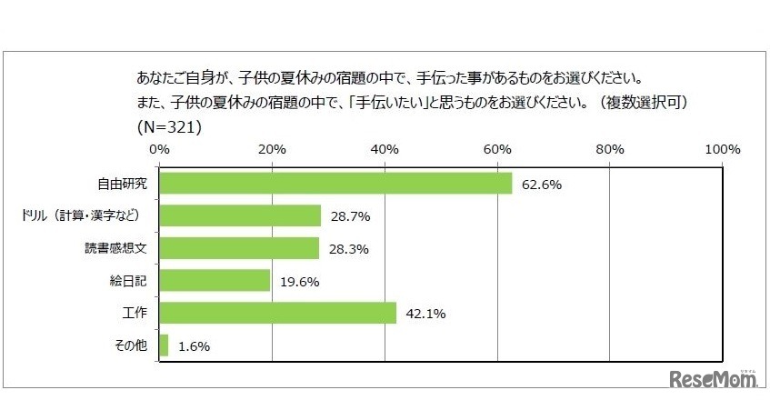 子どもの夏休みの宿題で手伝ったことがある、または手伝いたいもの