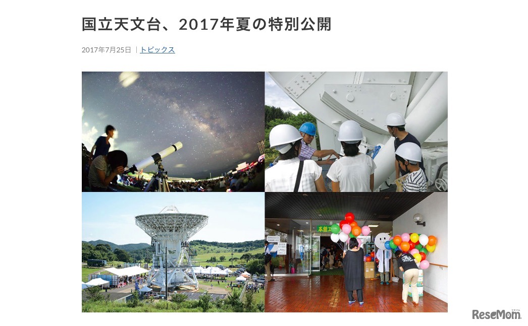 【夏休み2017】国立天文台、全国4施設を特別公開…講演会や施設見学など 1枚目の写真・画像