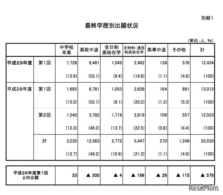 平成29年度第1回高卒認定試験出願者数、前年度比4.4%減の12,434人 2枚目の写真・画像