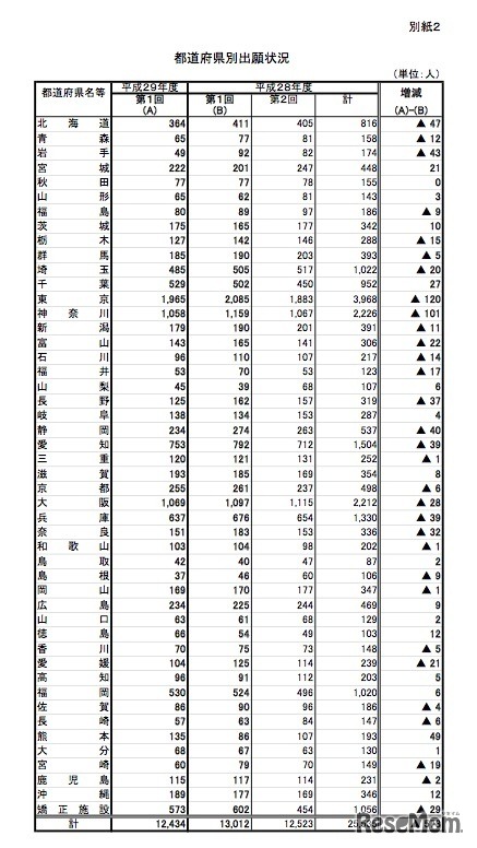 文部科学省は7月25日、平成29年度(2017年度)第1回高等学校卒業程度認定試験の出願状況を発表した。出願者数は12,434人で、前年度同回の出願者数と比較して578人(4.4%)減となった。試験は8月2日・3日の2日間、全国の都道府県において実施される。