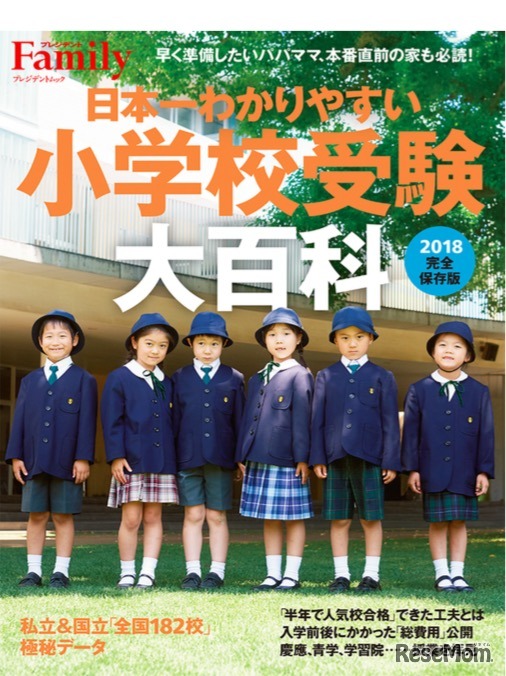 家庭教育雑誌「プレジデントファミリー」は、小学校受験をテーマにした別冊本「小学校受験大百科2018」を発売した。最新のデータや合格者の声、名門小学校での教育内容など、小学校受験を徹底解剖する1冊となっている。