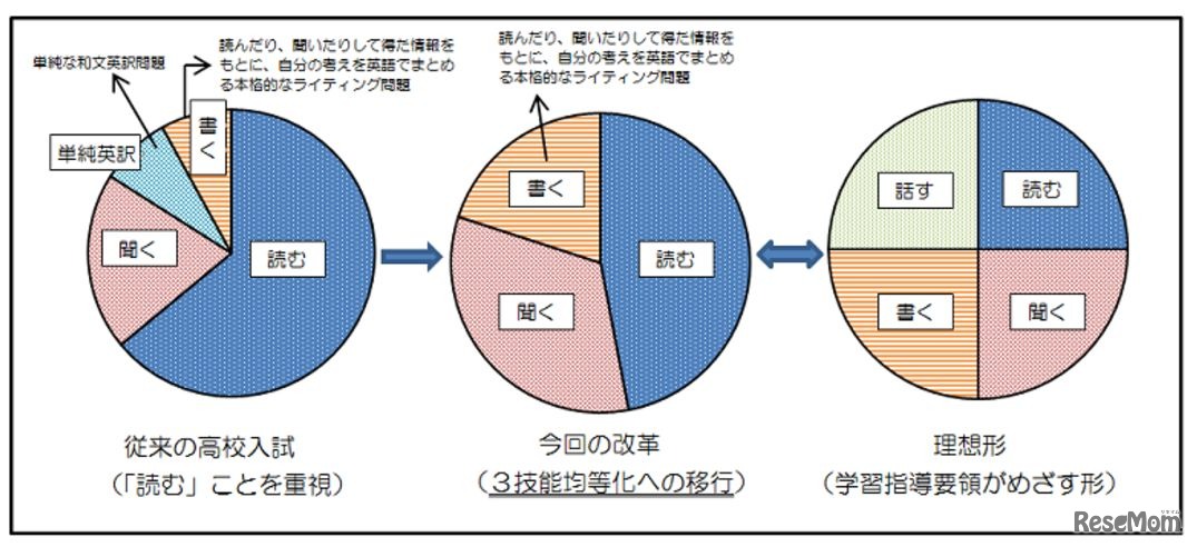 大阪府教育委員会は7月28日、府立高校の英語学力検査問題改革について発表した。平成30年度(2018年度)入試では、「聞く」「書く」問題の配点を合わせて50%以上とするほか、1分間に読む語数を2.7倍に増やし、問題文をすべて英語とする。