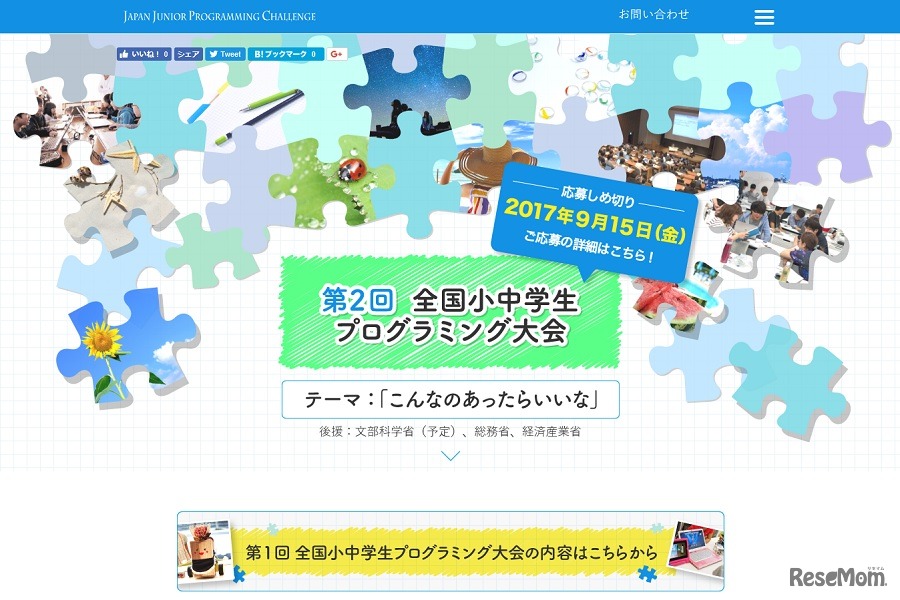 全国小中学生プログラミング大会実行委員会は朝日新聞社との共催により、「第2回 全国小中学生プログラミング大会」を開催する。第2回大会のテーマは「こんなのあったらいいな」。作品応募は8月1日~9月15日まで受け付けている。