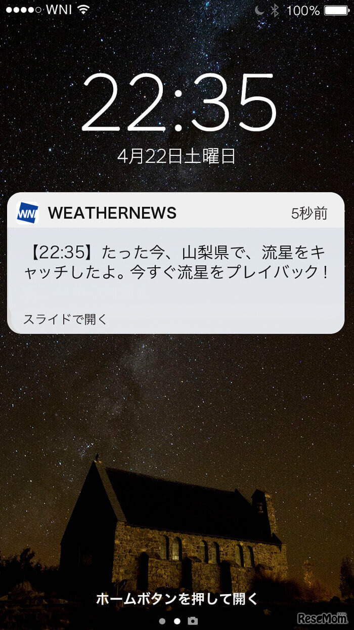 ウェザーニューズの通知サービス「流星キャッチャー」