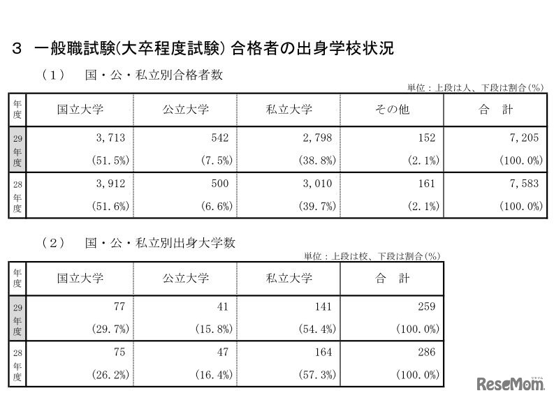 人事院は8月23日、平成29年度(2017年度)国家公務員採用一般職試験(大卒程度)と専門職試験(大卒程度)の合格者を発表した。倍率は、一般職試験が4.9倍、専門職試験のうち皇宮護衛官が41.9倍など。