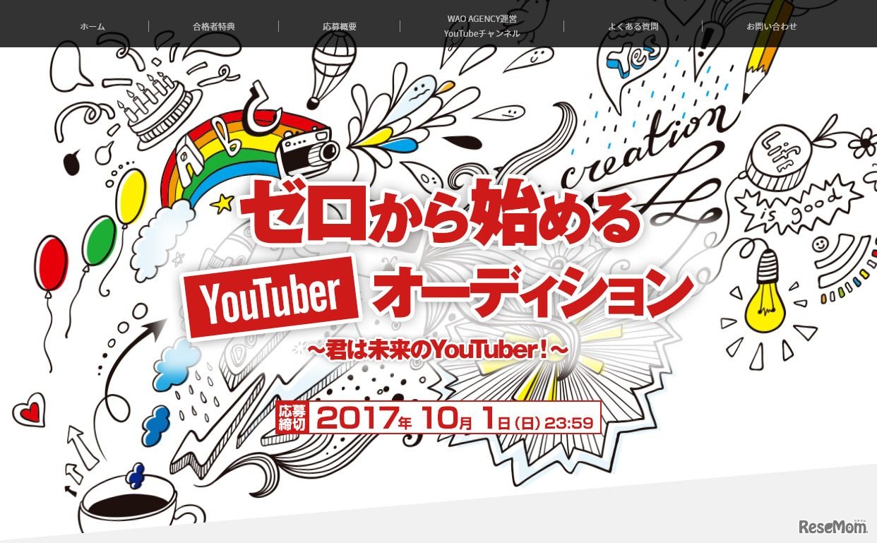 ワオ・エージェンシーは、YouTuber(ユーチューバー)を目指す新しい才能の発掘を目的とする「ゼロからはじめるYouTuberオーディション」を開催する。年齢や性別、国籍や学歴は不問。保護者の同意があれば、未就学児も参加できる。