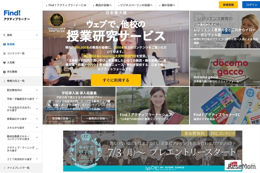 Findアクティブラーナーは、全国の教育関係者同士で授業用教材や授業設計などを自由に売買できるサービス「Find!アクティブラーナー・シェア」をリリースした。利用開始は2017年秋を予定。8月25日、全国の教育関係者からの教材募集を開始した。