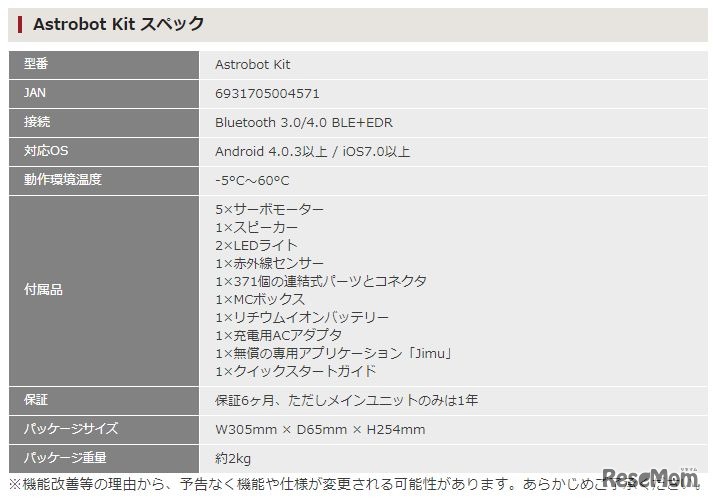UBTECH Jimu Robot Astrobot Kitのスペック