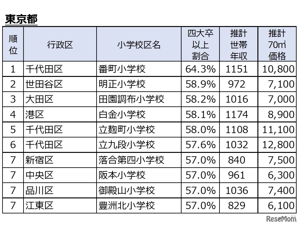 東京・神奈川・埼玉・千葉、四大卒以上が多い小学校区ランキング 1枚目の写真・画像