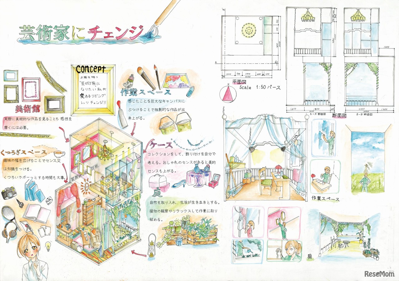 平成29年度インテリアコーディネーションコンテスト 優秀賞 村田真南さんの作品「芸術家にチェンジ」
