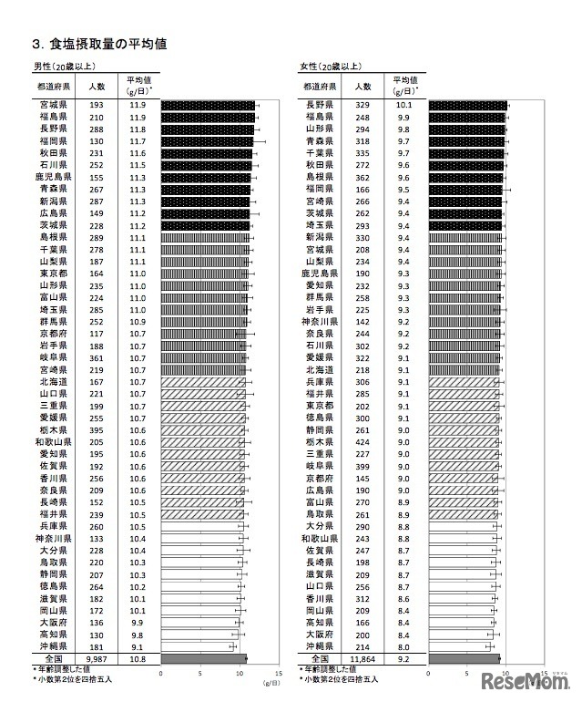 厚生労働省は9月21日、平成28年「国民健康・栄養調査」の結果をとりまとめ、公表した。全国のBMI平均値は、男性が23.8、女性が22.6。男性でもっともBMIが高い高知県は25.1だったのに対し、もっとも低い新潟県は23.1と地域によって差がみられた。