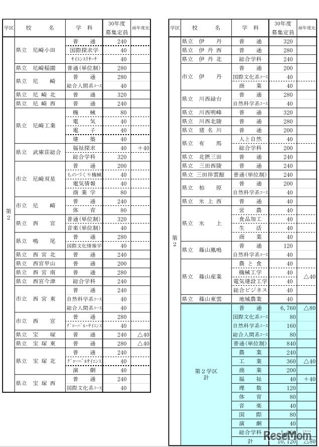 兵庫県教育委員会は、平成30年度(2018年度)公立高校第1学年の募集定員を発表した。全日制の課程は、前年度比640人減の3万2,880人募集する。武庫荘総合の福祉探求科と姫路西の国際理学科が新設される。