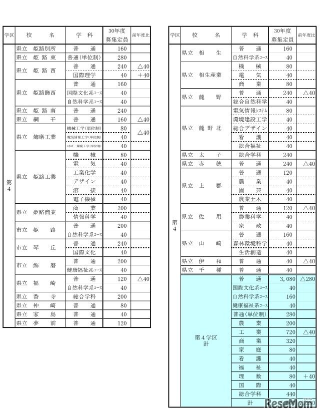 兵庫県教育委員会は、平成30年度(2018年度)公立高校第1学年の募集定員を発表した。全日制の課程は、前年度比640人減の3万2,880人募集する。武庫荘総合の福祉探求科と姫路西の国際理学科が新設される。