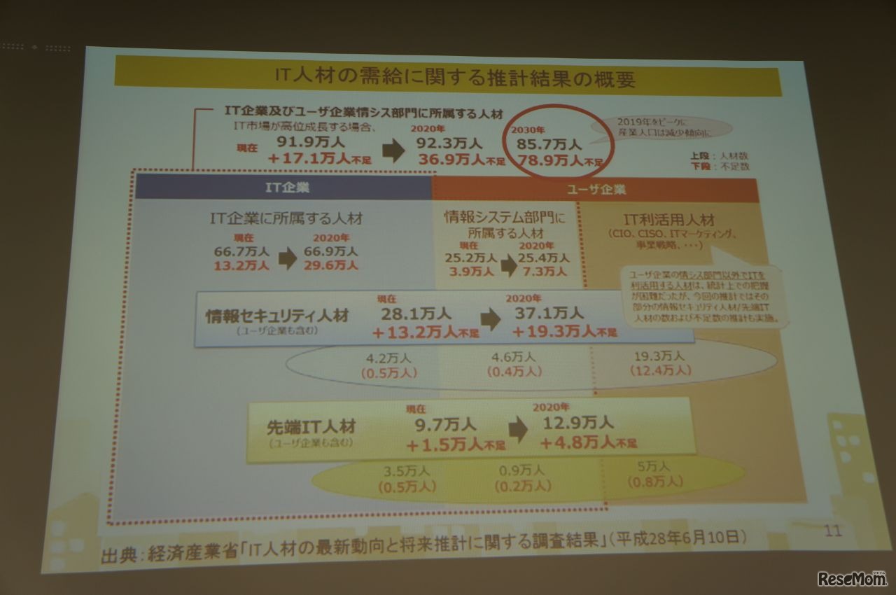 画像:2017/10/27(金)eラーニングアワード2017フォーラム」 基調講演「文部科学省:教育の情報化の動向と今後の展望について」 IT人材の推計