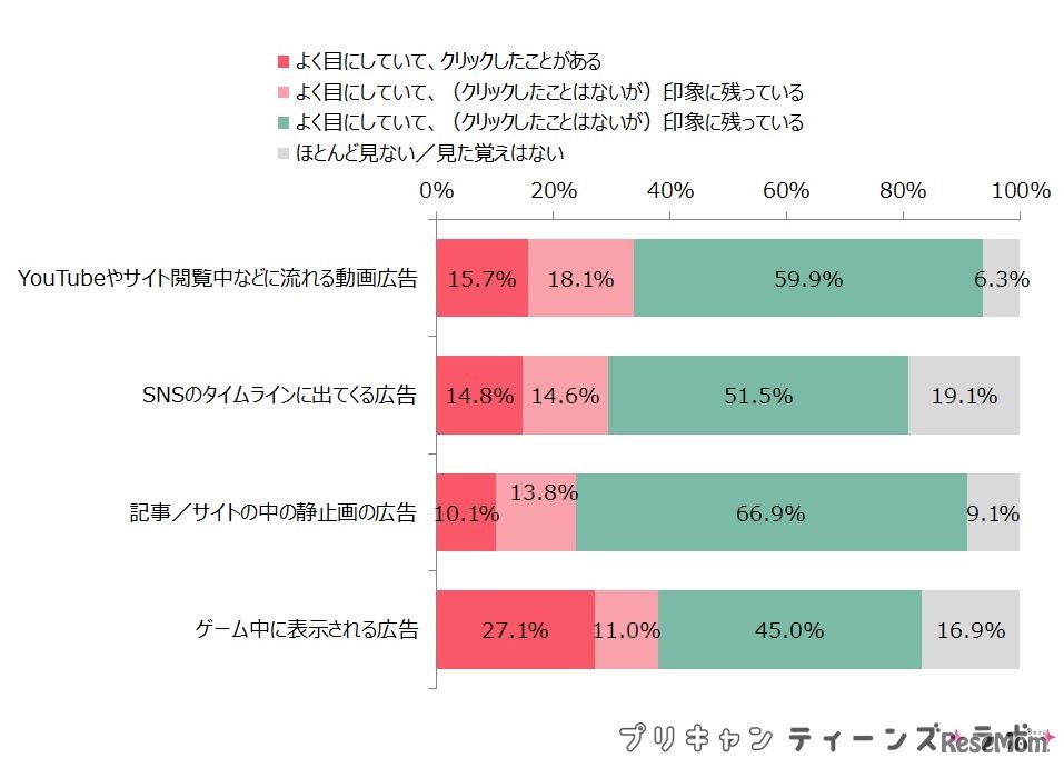 「プリキャンティーンズラボ」は10月30日、10代女子のスマホ広告に関する調査の結果を公開した。スマホを所有する中学生以上の10代女子のうち、7割は記事やサイト内の静止画広告をすべて無視していることがわかった。