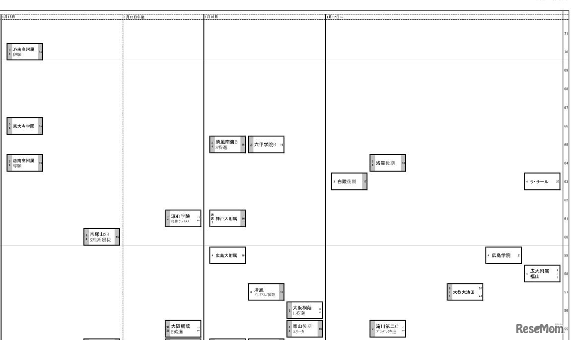 日能研「予想R4偏差値一覧」関西11月21日版・男子1月15日~