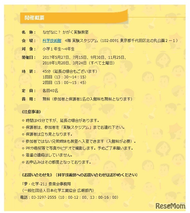 夢・化学-21「なぜなに?かがく実験教室」開催概要