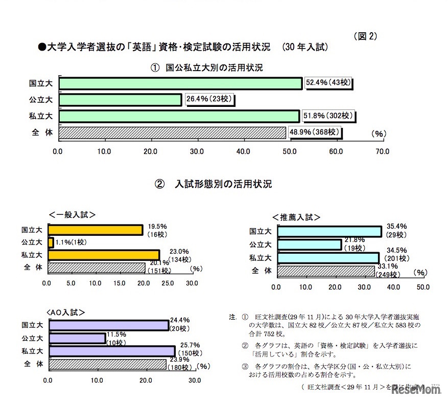 旺文社教育情報センターは平成29年12月、「どうなる、“32年度以降”の国立大入試!?」を掲載。11月に国立大学協会が発表した「平成32年度以降の国立大学の入学者選抜制度 -国立大学協会の基本方針-」の概要、取組事項の背景、これまでの経緯などをまとめている。