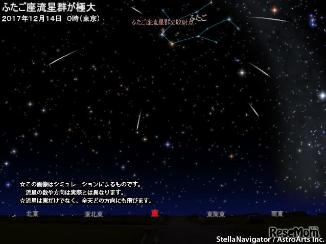 ふたご座流星群(2017年12月14日0時 東京) (c)アストロアーツ