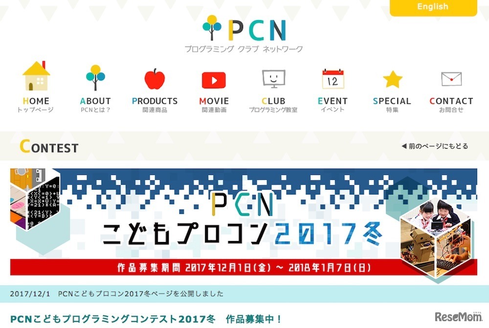 すべての子どもたちにプログラミングを学ぶ機会を届ける活動を行っているプログラミング クラブ ネットワーク(PCN)は、「PCNこどもプログラミングコンテスト2017冬」を開催。小・中学生を対象に、2018年1月7日まで作品を募集する。