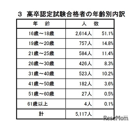 文部科学省は平成29年12月7日、平成29年度(2017年度)第2回高等学校卒業程度認定試験(高卒認定試験)の結果を公表した。前年度比199人減の10,912人が受験し、高卒認定試験合格者は前年度比677人増の5,117人であった。