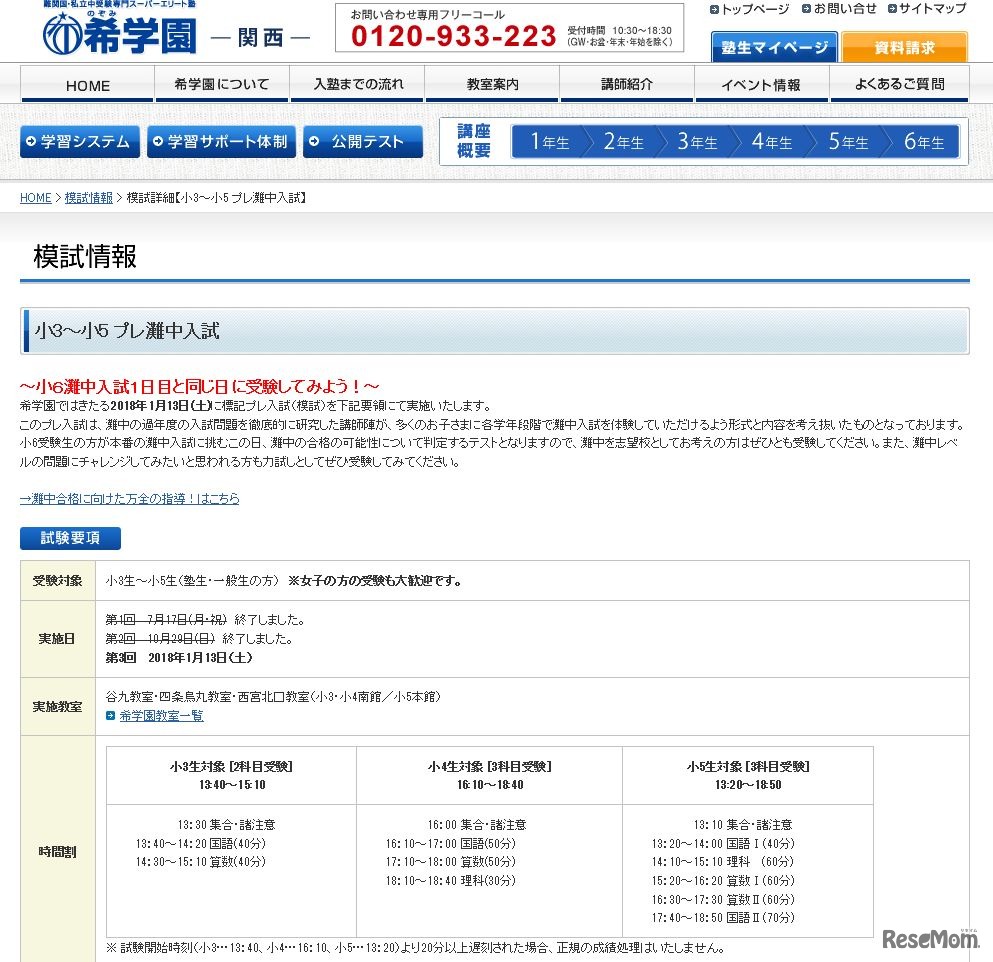 希学園関西は2018年1月13日、小学3~5年生対象の模擬試験「プレ灘中入試」を希学園の3教室で実施する。当日は灘中学校の2018年入試1日目。各学年段階で灘中入試を体験できるよう考えられた内容のテストを、入試本番と同じ日に受験できる。受験料無料。