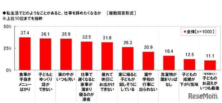 画像出典:養命酒製造 ワーキングママの冷えと疲れに関する調査 私生活でどのようなことがあると仕事を辞めたくなるか