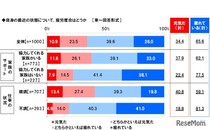 ワーキングママの3人に2人が疲労状態にあることが、養命酒製造の調査結果より明らかになった。疲労蓄積による失敗は、「子どもを寝かしつけているうち自分も寝てしまった」が40.1%と最多だった。