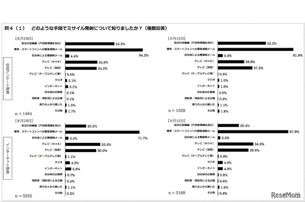 画像出典:北朝鮮によるミサイル発射事案に関する住民の意識・行動等についての調査 どのような手段でミサイル発射について知ったか