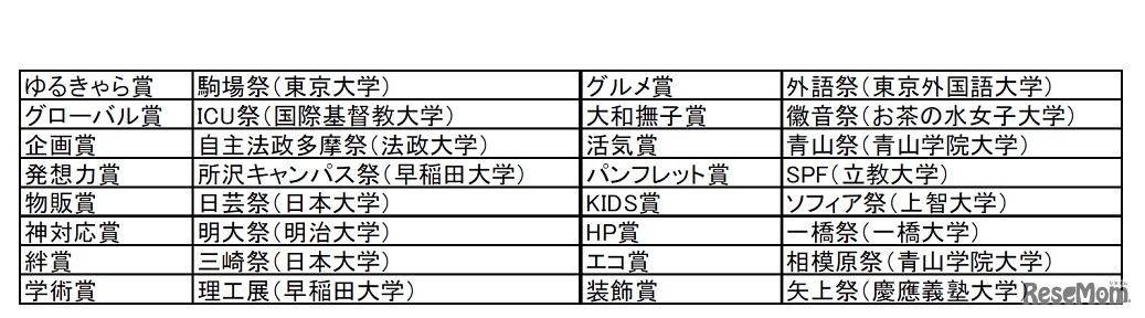「ベストオブ学園祭2017」各部門賞