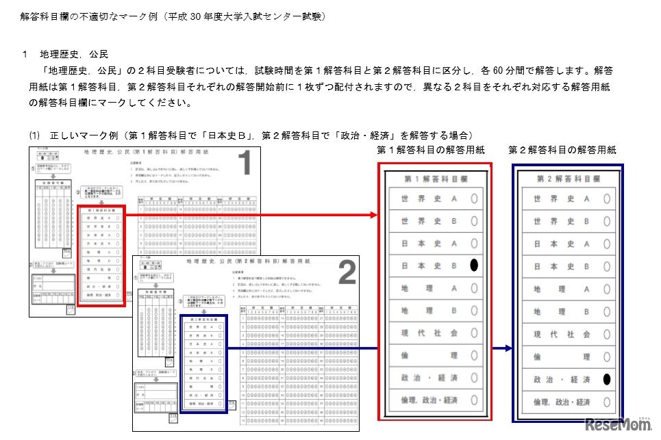 大学入試センターは、平成30年度(2018年度)大学入試センター試験の「試験問題冊子の注意事項等について」と「解答科目欄の不適切なマーク例」をWebサイトに掲載。事前に確認すべき注意事項を公開している。