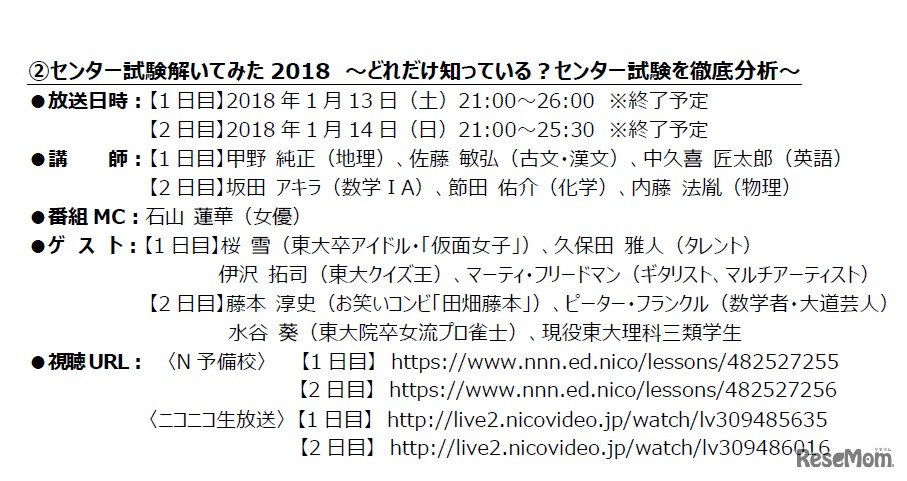 センター試験解いてみた2018、N予備校が当日ライブ解説…桜雪・東大クイズ王ほか登場 2枚目の写真・画像