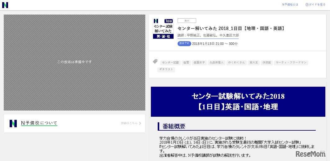 角川ドワンゴ学園「N高等学校(N高)」は、2018年1月13日と14日に行われるセンター試験当日の午後9時からライブ解説「センター試験解いてみた2018 ~どれだけ知っている?センター試験を徹底分析」を実施する。