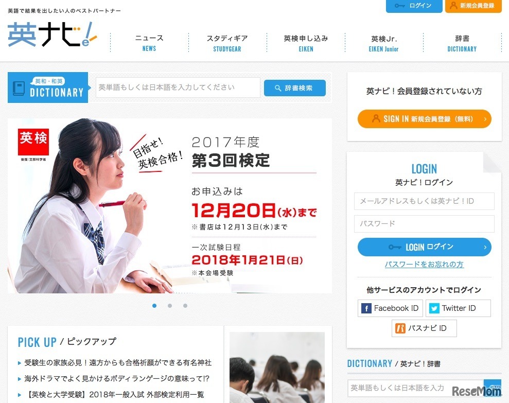 日本英語検定協会は2017年12月19日、2017年度第3回検定の一次試験の合否結果閲覧について、「英ナビ!」会員サイトでの先行公開を実施すると発表。通常、2月5日の午後3時または午後4時以降となっているところ、先行公開では2月5日午後1時以降に結果を閲覧できる。