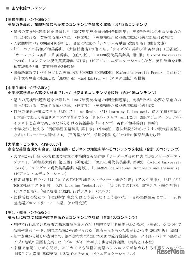 シャープは2017年12月20日、カラー電子辞書「Brain」4機種11モデルを発表した。調べるだけでなく学習ツールとしても使え、新学習指導要領に沿った英語4技能学習や英検対策を強化している。価格はオープン。