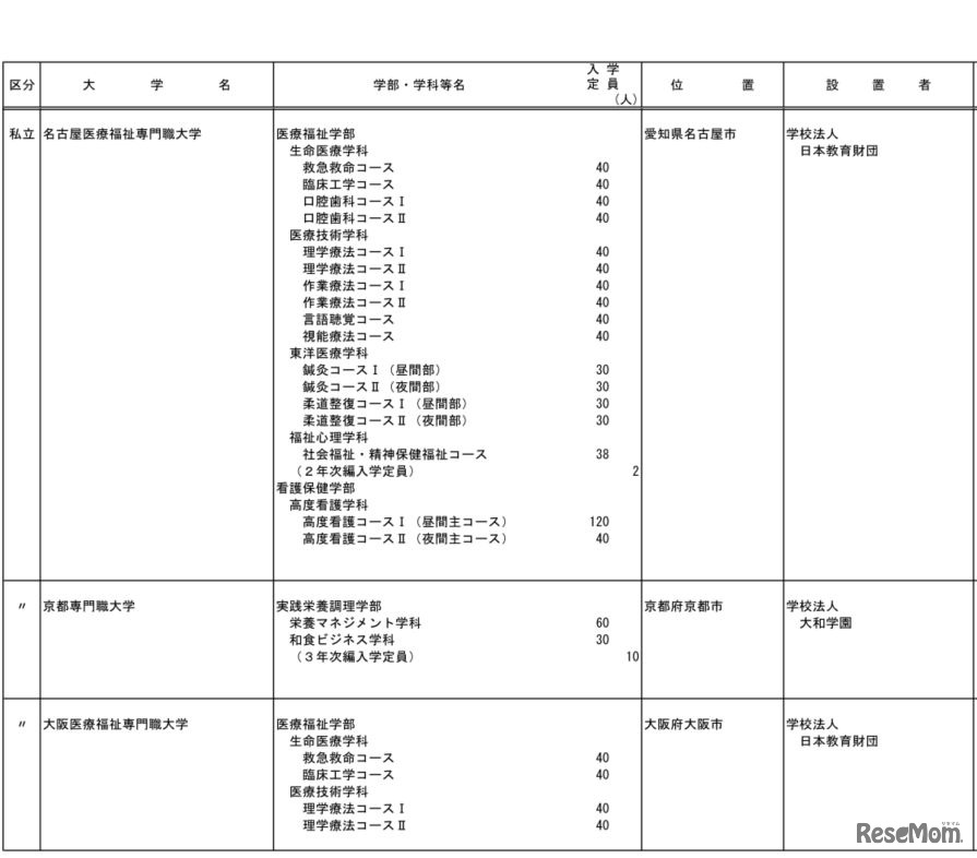 文部科学省は、平成31年度(2019年度)開設予定の専門職大学の認可について発表した。平成29年11月末に設置認可を申請した専門職大学は13校、専門職短期大学は3校にのぼる。