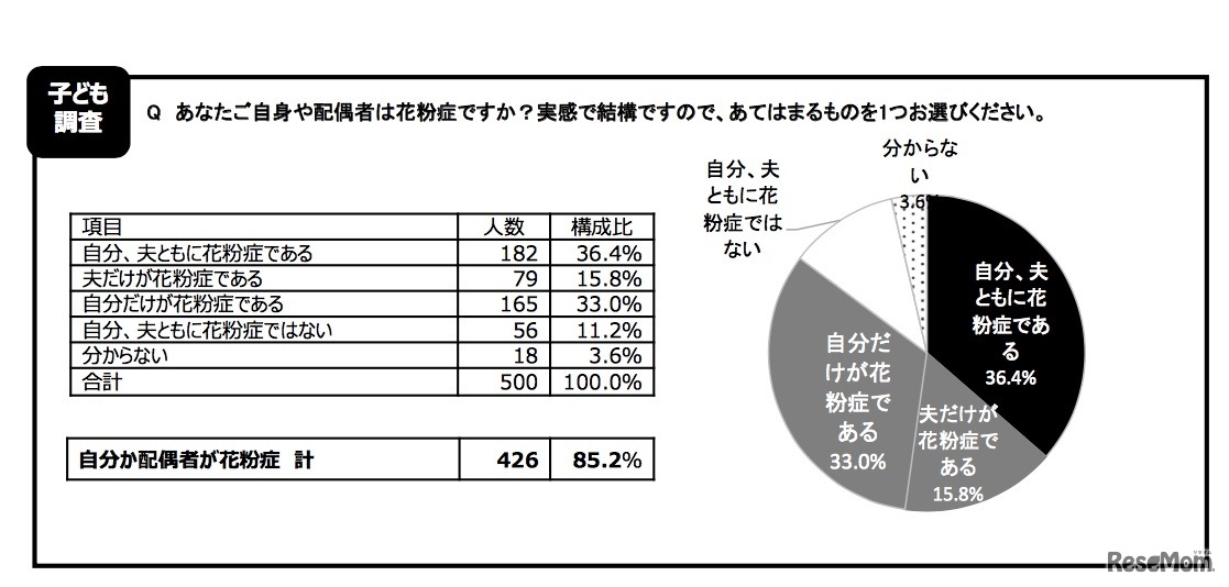 「花粉症調査」ロート製薬調べ 子どもの親の花粉症について(子ども調査)