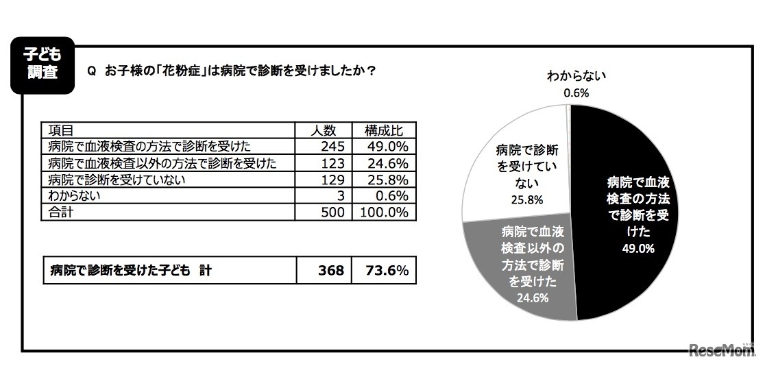 「花粉症調査」ロート製薬調べ 病院での診断について(子ども調査)