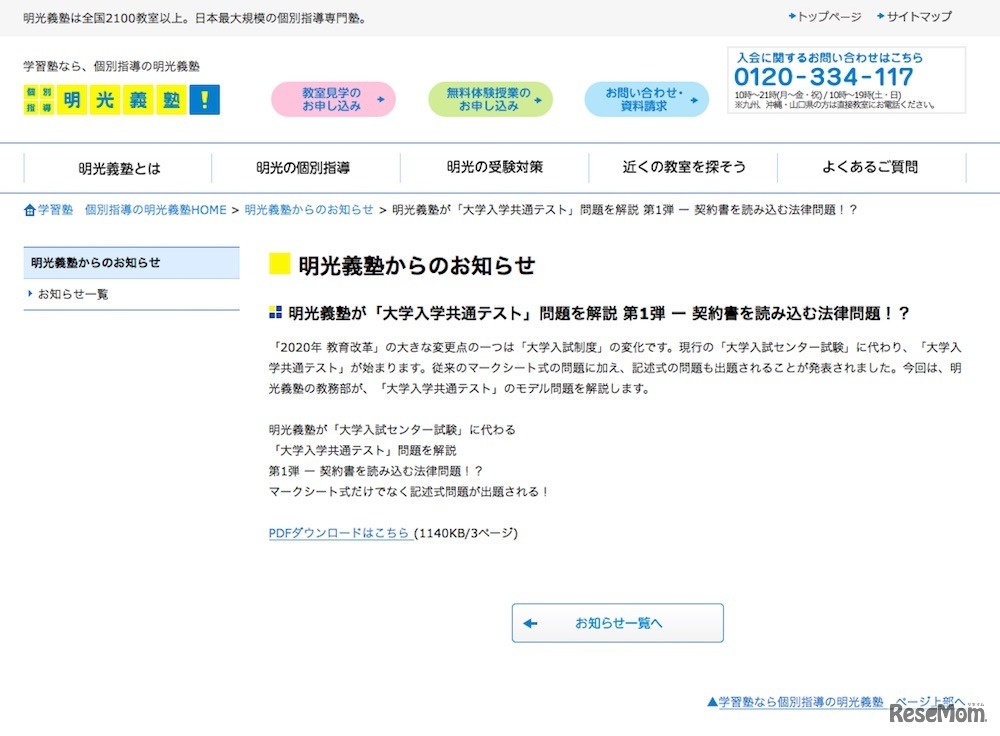 個別指導の学習塾「明光義塾」を全国展開する明光ネットワークジャパンは、2年後に迫る「2020年教育改革」に向けた情報を定期的に発信している。2017年12月26日には、明光義塾の教務部による「大学入学共通テスト」モデル問題の解説を公開した。