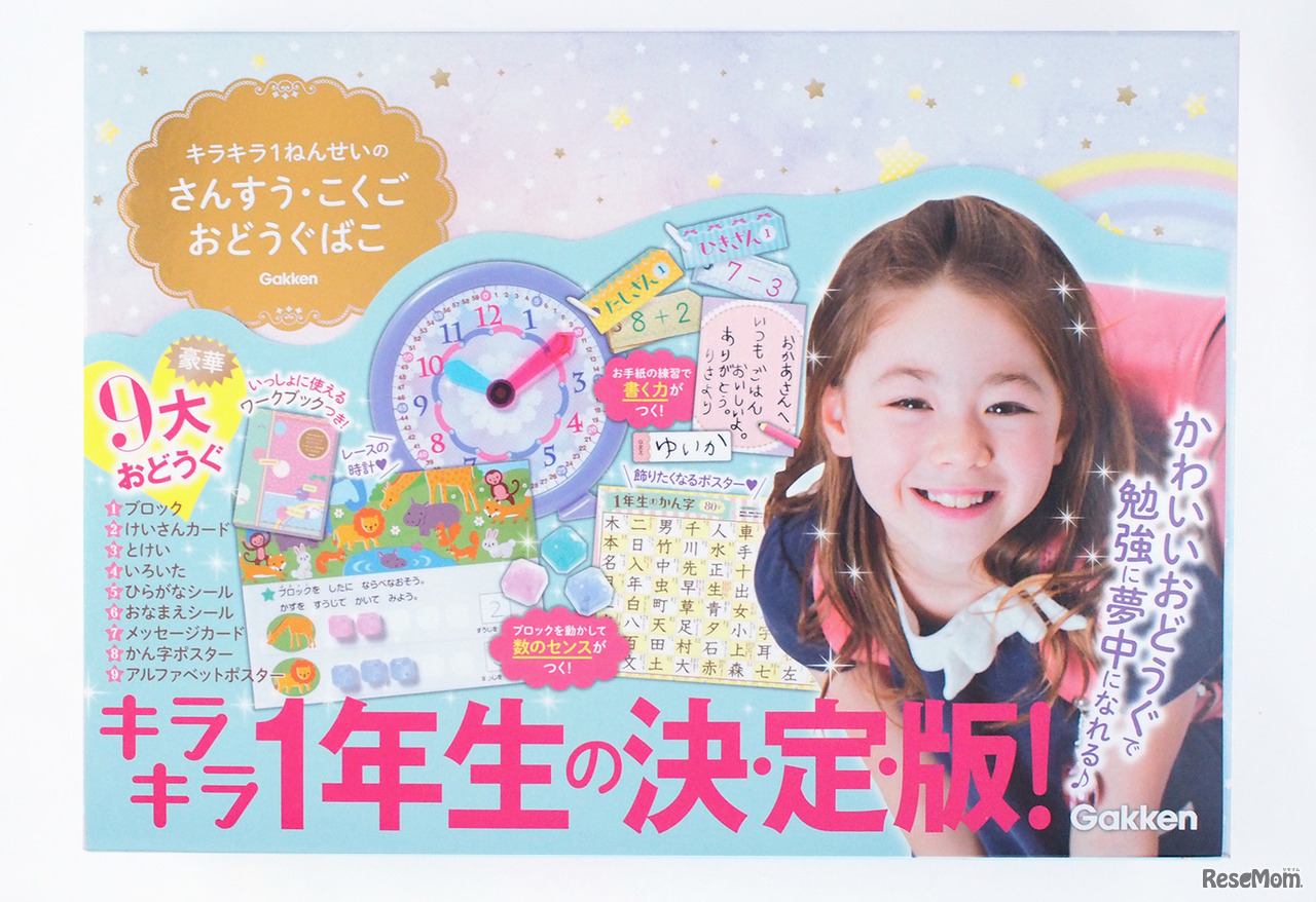 学研プラスは、教具とワークブックがセットになった小学新1年生向け「キラキラ1ねんせいの さんすう・こくご おどうぐばこ」を2017年12月29日に発売する。価格は3,700円(税別)。入学準備から使える、女の子の「かわいい」が詰まったおどうぐばこだ。