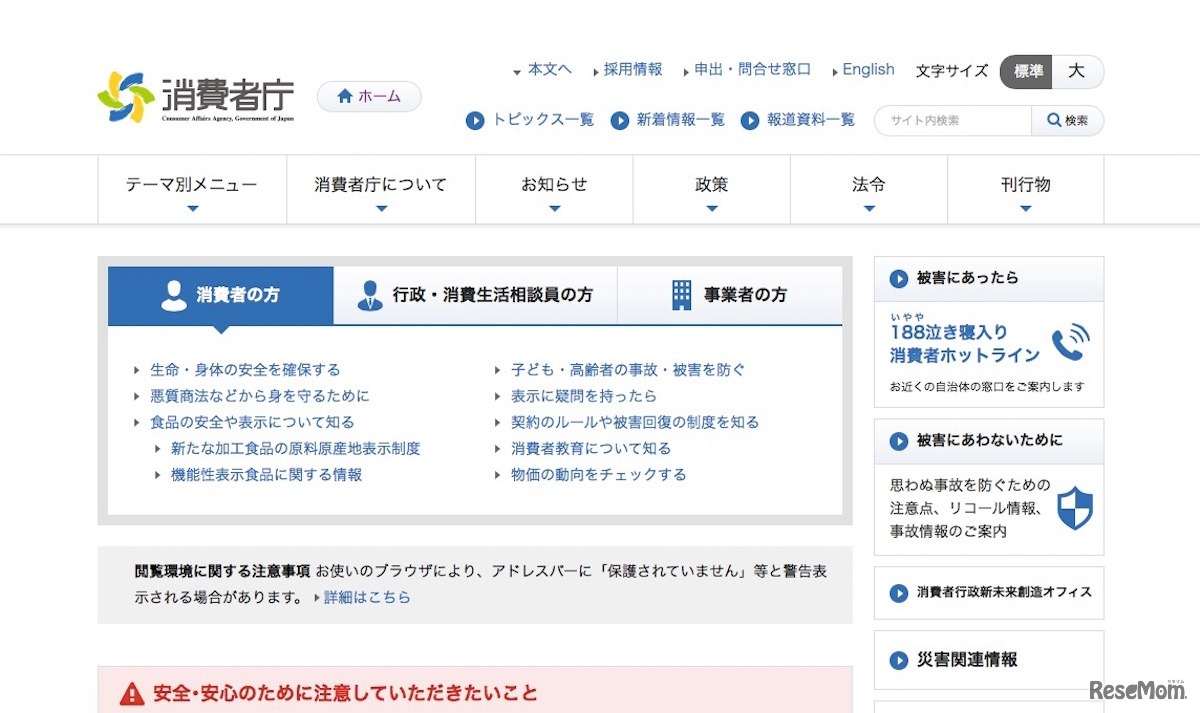 消費者庁は2017年12月27日、餅による窒息事故や大掃除中の転落事故など、年末年始に多発する事故を未然に防ぐため、特に注意してほしいポイントをWebサイトに公表した。この時期特有の事故に留意し、年末年始を安全に過ごしてほしいと呼びかけている。